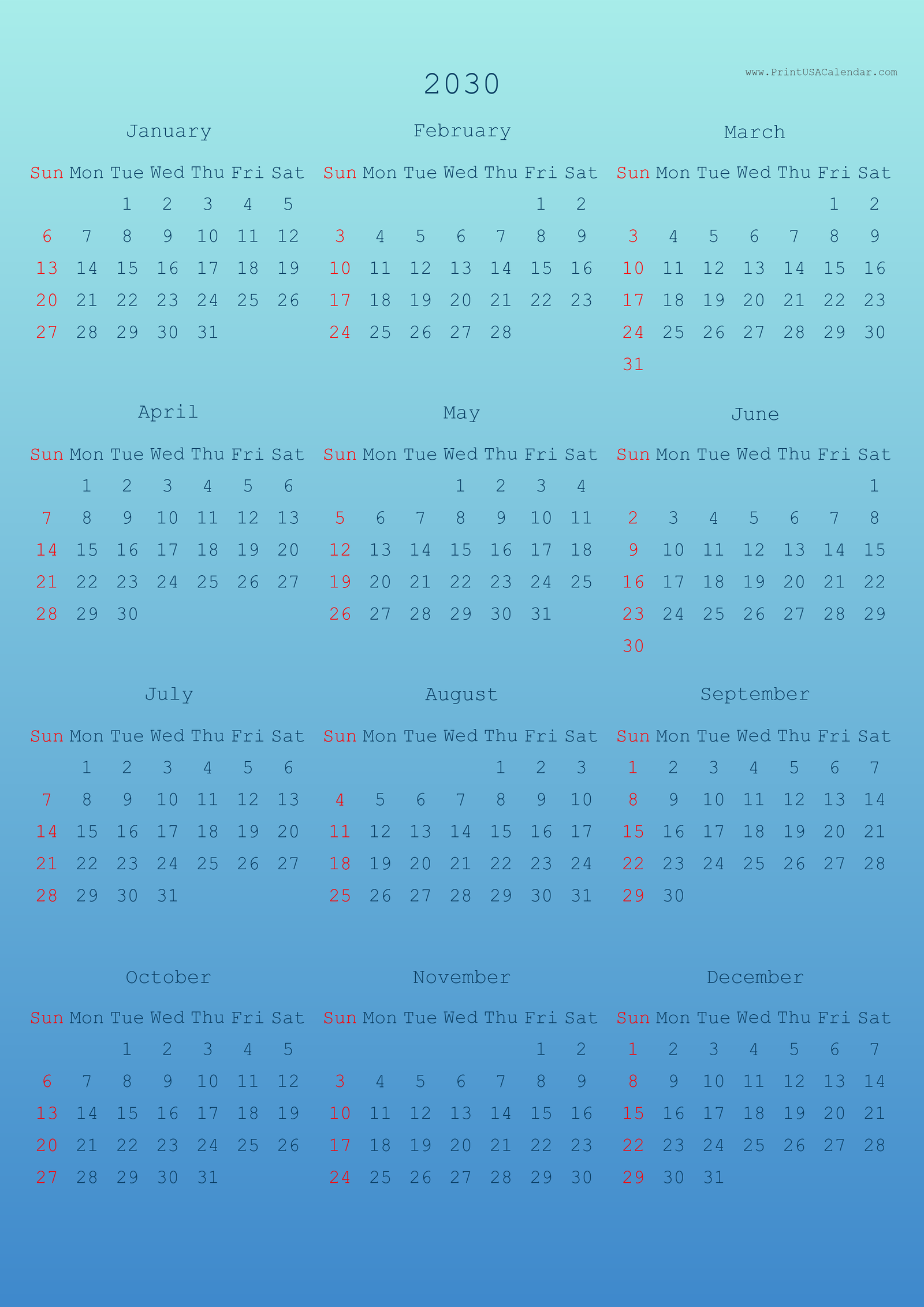 โ Back to 2030 calendars
