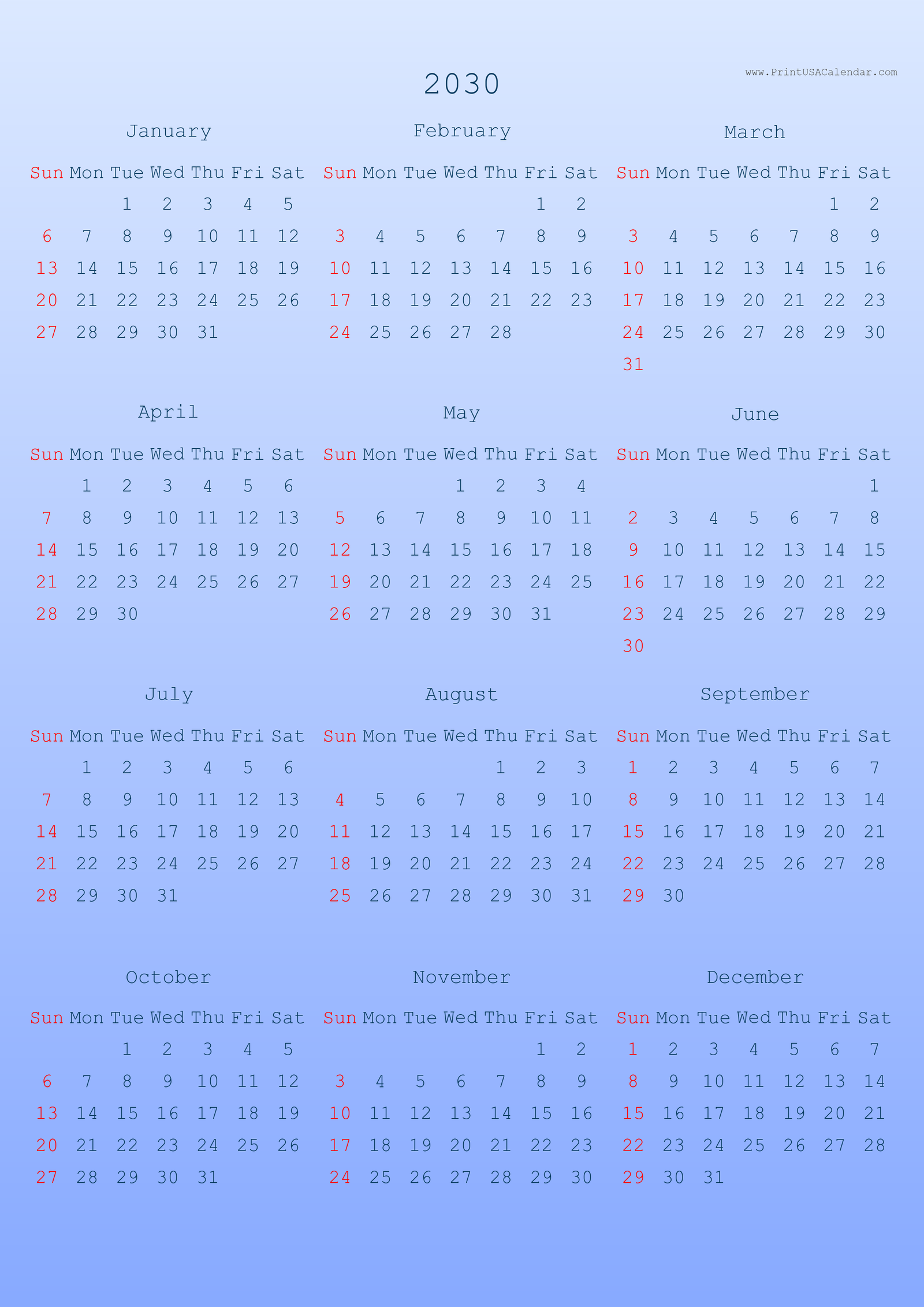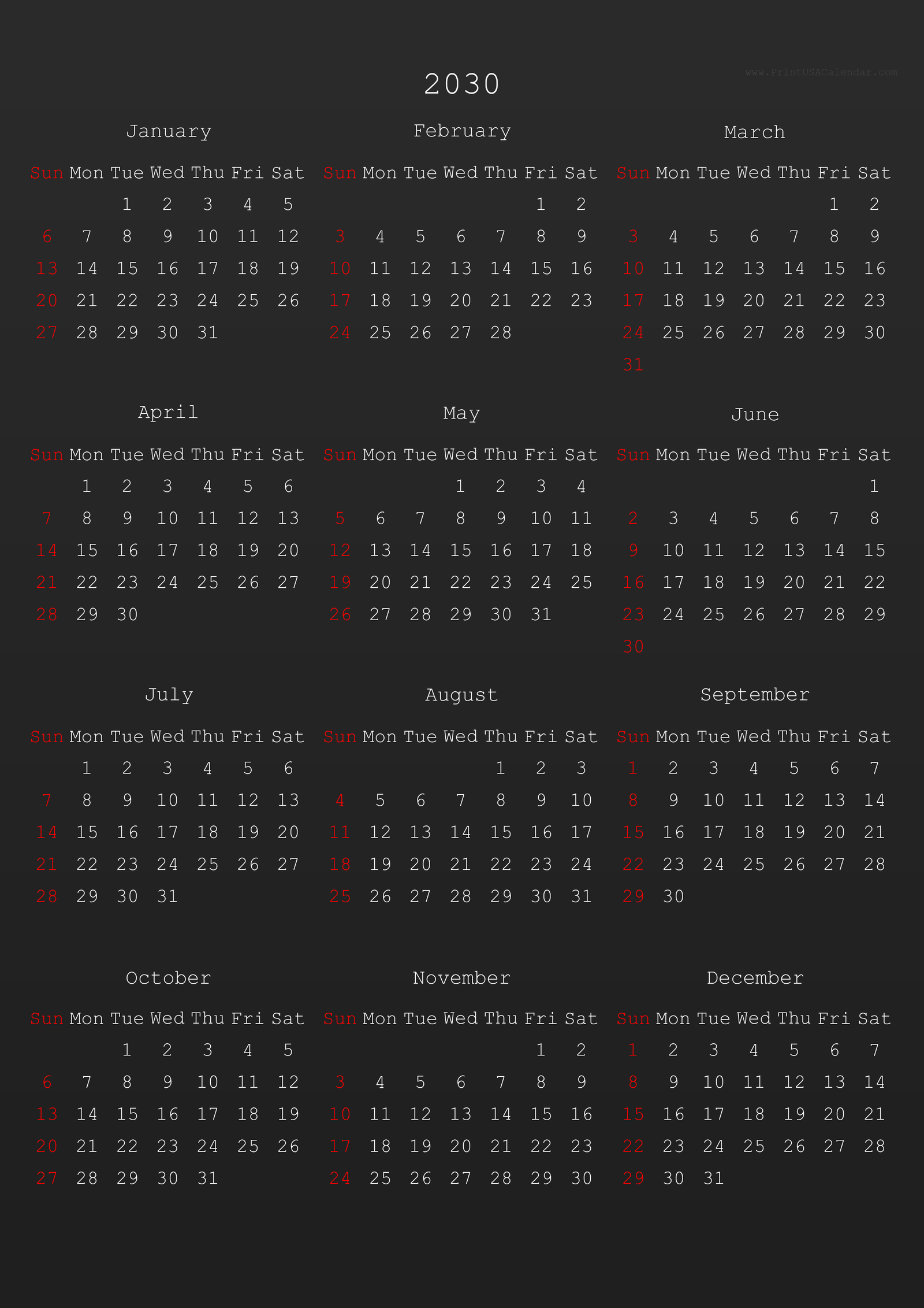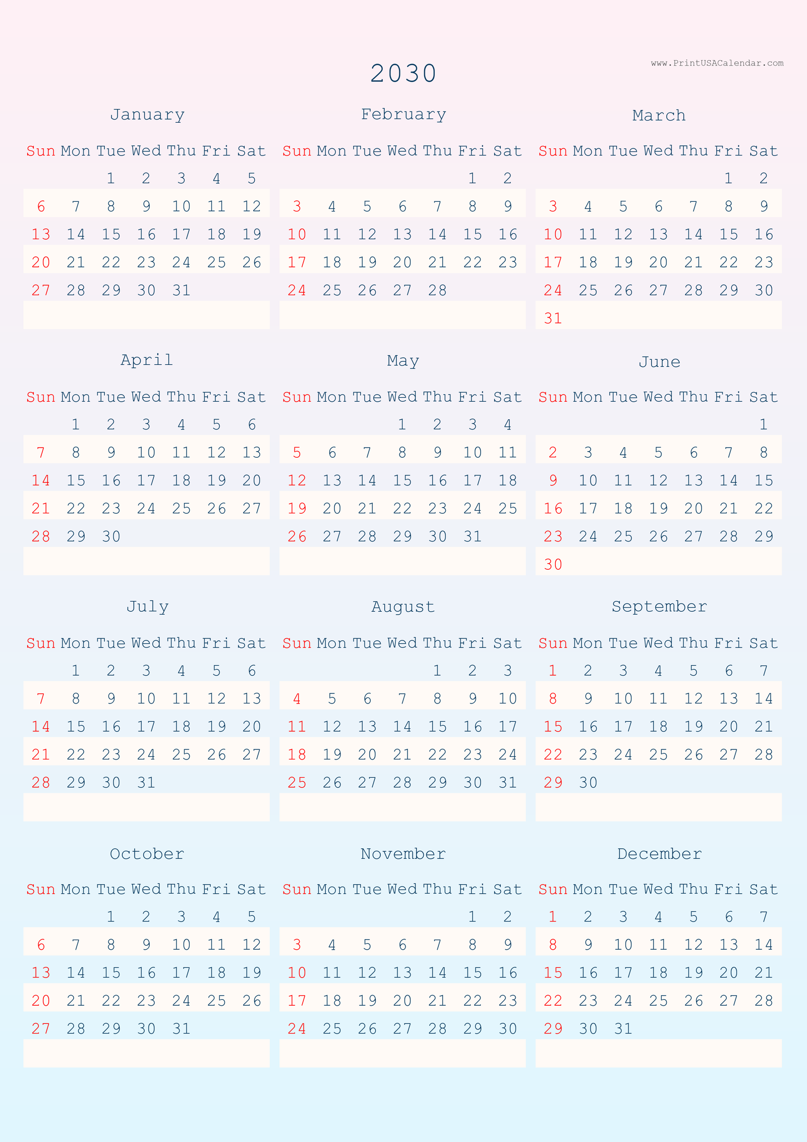 โ Back to 2030 calendars